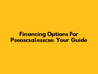 Financing Options For Pseoscsalesscse: Your Guide