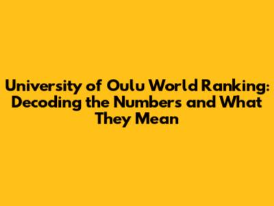 Alright, folks, let's dive into the University of Oulu's world ranking. It's a topic that's probably buzzing in your brains if you're considering studying here, or maybe you're just curious about how this Finnish gem stacks up against the global competition. First off, why does this even matter? Well, university rankings are like the report cards of higher education. They give us a glimpse into a university's overall performance, its research output, the quality of its teaching, and even its international outlook. It's a way to quickly assess a university's standing and compare it with others. These rankings can influence a lot, including the university's reputation, its ability to attract top-tier students and faculty, and even funding opportunities. Keep in mind that no single ranking tells the whole story. Different ranking systems use different methodologies, which means the results can vary. For example, some rankings might put a heavier emphasis on research citations, while others might focus more on student satisfaction or the number of international students. When we talk about the University of Oulu's world ranking, we're typically looking at scores from a few major ranking systems: QS World University Rankings, Times Higher Education World University Rankings (THE), and the Academic Ranking of World Universities (ARWU), also known as the Shanghai Ranking. Each of these systems has its own set of criteria, weighting factors, and data sources. So, don’t be surprised if the University of Oulu's position varies slightly across these different lists. The exact numbers change from year to year, depending on the performance of the university, and the performance of the other universities across the globe. But in general, the University of Oulu consistently secures a spot among the world's top universities. The exact position will fluctuate, but you can generally expect to see it somewhere in the range of the top 300 to 500 universities globally. Pretty impressive, right? To get a clear picture, always consult the most recent rankings from these sources.