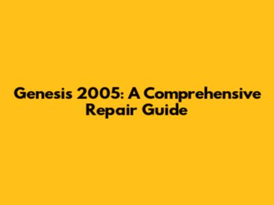 Genesis 2005: A Comprehensive Repair Guide