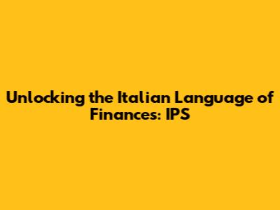 Hey guys! Ever wondered about the secrets of Italian financial language? If you're a finance enthusiast, a language learner, or just someone curious about the intersection of these two worlds, you're in the right place. Today, we're diving deep into a specific term: "IPS". We'll explore what it means, why it's important, and how it fits into the broader landscape of Italian financial vocabulary. So, buckle up, because we're about to embark on a linguistic journey through the world of Italian finances. Let's get started, shall we?