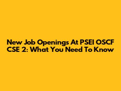 New Job Openings At PSEI OSCF CSE 2: What You Need To Know