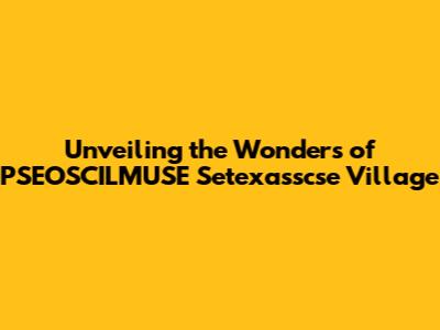 The Unique Culture and Community of PSEOSCILMUSE Setexasscse Village