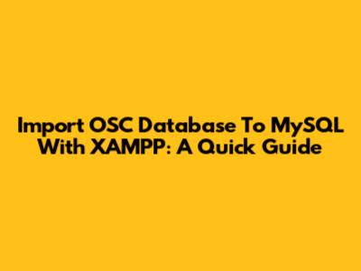 Import OSC Database To MySQL With XAMPP: A Quick Guide
